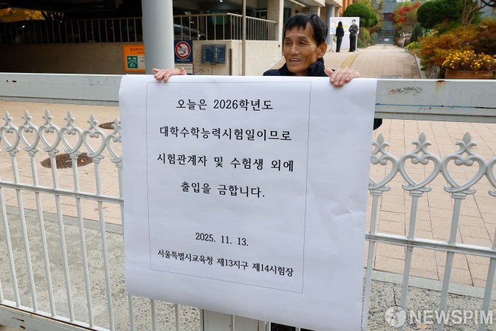 [서울=뉴스핌] 류기찬 기자 = 2026학년도 대학수학능력시험이 실시된 13일 오전 서울 영등포구 여의도여자고등학교에서 입실시간이 종료되어 출입문이 굳게 닫혀있다. 2025.11.13 ryuchan0925@newspim.com