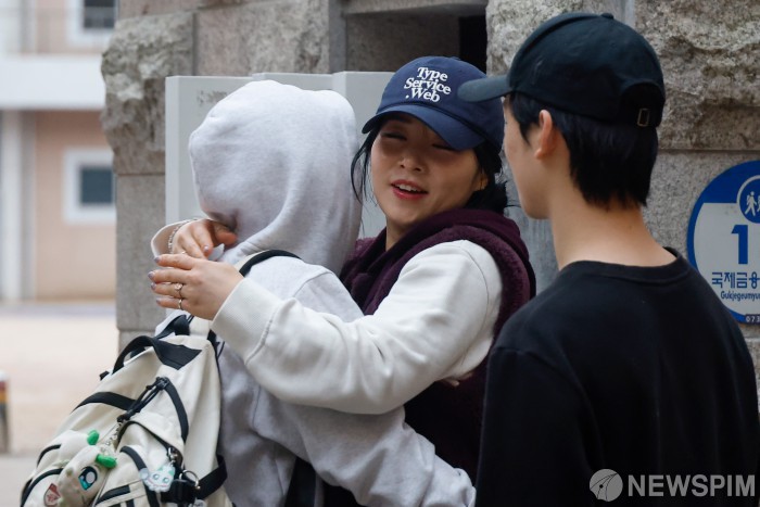 | [서울=뉴스핌] 류기찬 기자 = 2026학년도 대학수학능력시험이 실시된 13일 오전 서울 영등포구 여의도여자고등학교에서 한 학부모가 딸과 함께 포옹을 하고 있다. 2025.11.13 ryuchan0925@newspim.com |