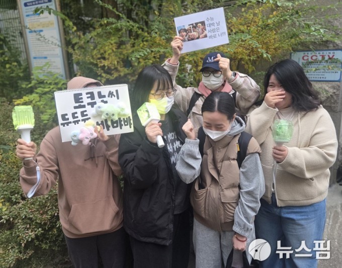 | [서울=뉴스핌] 신수용 기자 = 2026학년도 대학수학능력시험(수능)이 치러진 서울 영등포구 여의도여자고등학교 앞에서 수험생을 응원하러 온 시민들이 응원봉을 흔들고 있다. 2025.11.13 krawjp@newspim.com |
