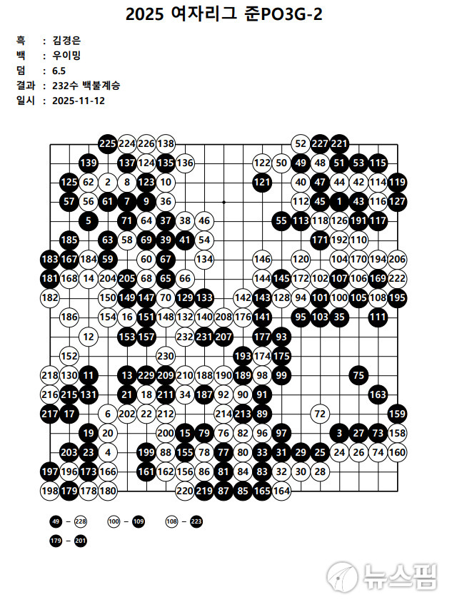 동시대국으로 열린 준플레이오프 3차전에서 평택 브레인시티산단의 외국인 선수 우이밍 6단은 포항 포스코퓨처엠의 김경은 5단을 상대로 232수 만에 백 불계승을 거두며 팀에 귀중한 첫 승을 안겼다. 건너편 경기에서도 평택 브레인시티산단의 김주아 4단이 포항 포스코퓨처엠의 주장 김혜민 9단에게 272수 만에 흑 불계승을 거두며 2-0 완승을 확정지었다. 평택 브레인시티산단은 주장 스미레 4단을 출전시키지 않고 플레이오프를 준비할 수 있게 됐다.