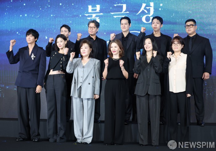 | [서울=뉴스핌] 김학선 기자 = 김희원, 허명행 감독을 비롯해 출연배우들이 2일 서울 광화문 포시즌스 호텔에서 열린 디즈니+ 오리지널 시리즈 '북극성' 제작발표회에서 포즈를 취하고 있다. 2025.09.02 yooksa@newspim.com |