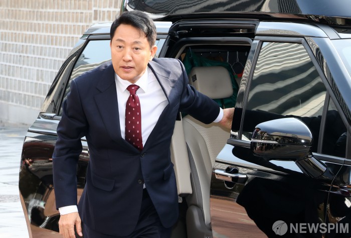 [서울=뉴스핌] 최지환 기자 = 오세훈 서울시장이 13일 서울 중구 달개비컨퍼런스에서 김윤덕 국토교통부 장관과 회동을 위해 이동하고 있다. 2025.11.13 choipix16@newspim.com