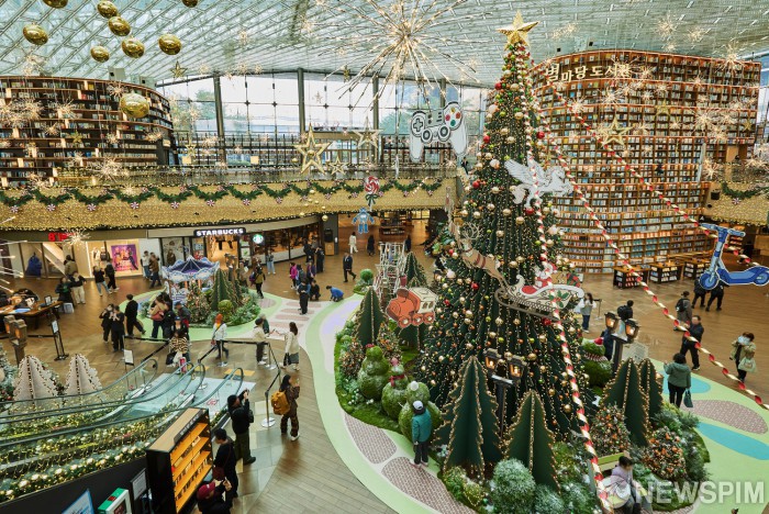 [서울=뉴스핌] 도심 속 '크리스마스 트리 명소' 스타필드 코엑스몰 별마당 도서관이 올해는 종이로 만든 환상적인 동화 속 세상으로 변신해 '책 속에서 펼쳐지는 크리스마스 축제' 테마를 선보인다고 13일 밝혔다. 사진은 스타필드 코엑스몰 별마당 도서관 '책 속에서 펼쳐지는 크리스마스 축제' 모습. [사진=신세계프라퍼티] 2025.11.13 photo@newspim.com