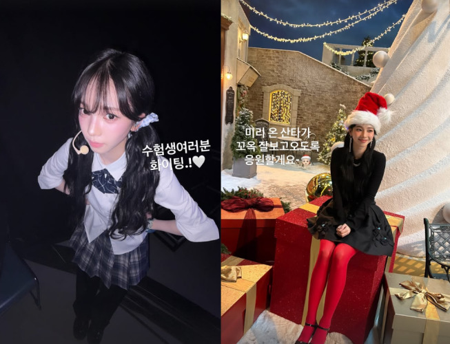 에스파 카리나도 교복을 입은 사진을 공개하며 "수험생 여러분 파이팅!"이라고 전했으며, 이후 크리스마스 컨셉의 스타일링으로는 "미리 온 산타가 꼬옥 잘 보고 오도록 응원할게요"라는 글을 적었다.