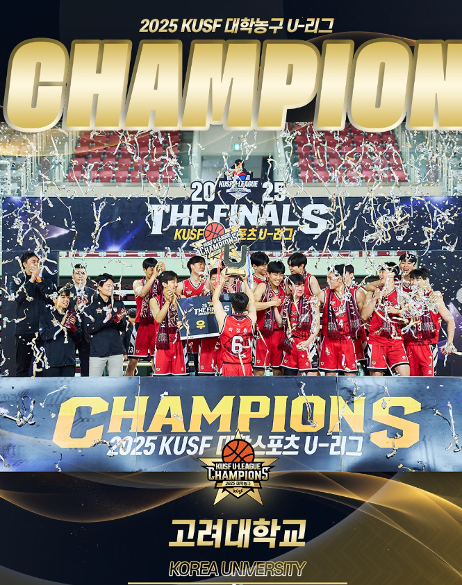 주희정 감독이 이끄는 고려대는 12일 서울 성북구 고려대체육관에서 열린 2025 한국대학스포츠협의회(KUSF) 대학농구 U-리그 남자부 챔피언결정전에서 성균관대를 68-60으로 제압했다.