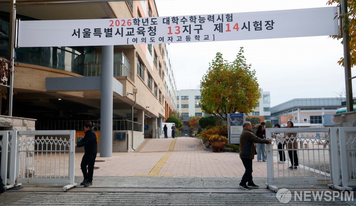 | [서울=뉴스핌] 류기찬 기자 = 2026학년도 대학수학능력시험이 실시된 13일 오전 서울 영등포구 여의도여자고등학교에서 입실시간이 종료되자 관계자들이 출입문을 닫고 있다. 2025.11.13 ryuchan0925@newspim.com |