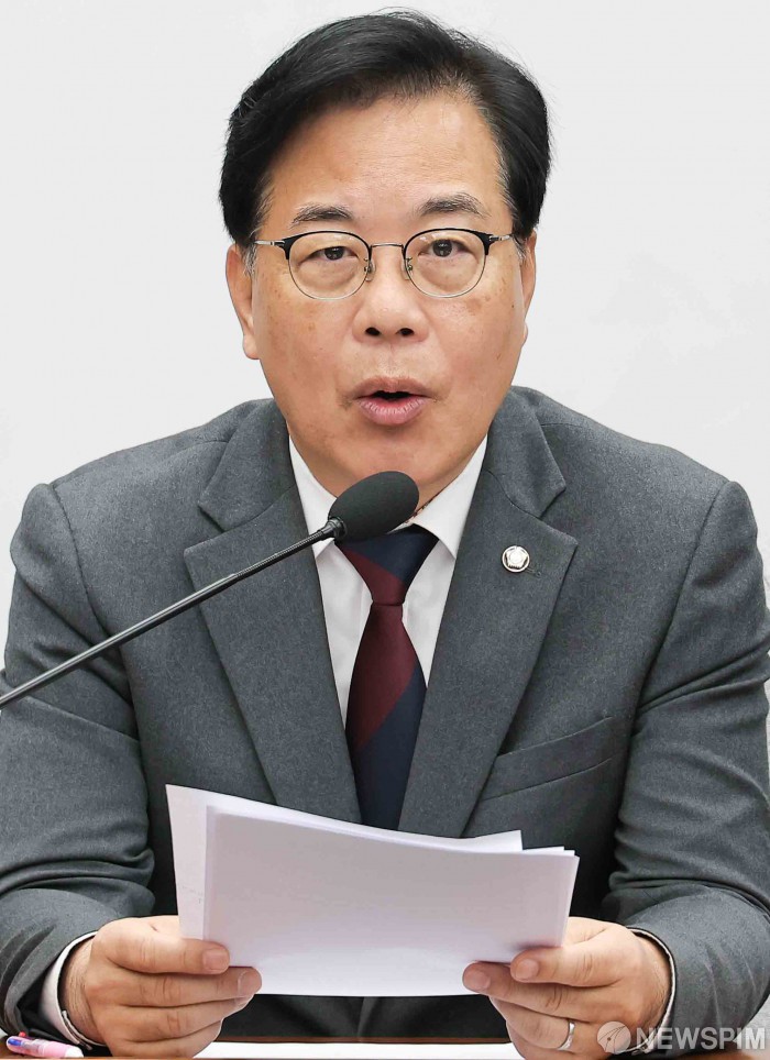 [서울=뉴스핌] 윤창빈 기자 = 송언석 국민의힘 원내대표가 14일 서울 여의도 국회에서 열린 원내대책회의에서 모두발언을 하고 있다. 2025.11.14 pangbin@newspim.com