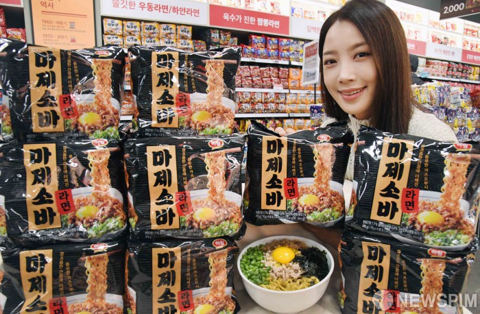 [서울=뉴스핌] 홈플러스가 14일 ‘메가 푸드 마켓 라이브’ 강서점에서 신제품 ‘마제소바 라면’을 소개하고 있다. 하림과 공동 기획한 ‘마제소바 라면’은 진한 간장 양념에 면을 비벼 먹는 일본식 ‘마제소바’ 콘셉트 제품이다. [사진=홈플러스] 2025.11.14 photo@newspim.com