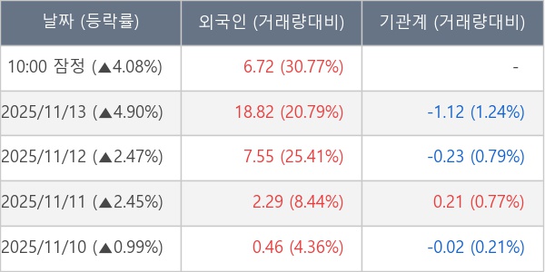 [표] 외국인ㆍ기관 순매매량 (단위 만주)