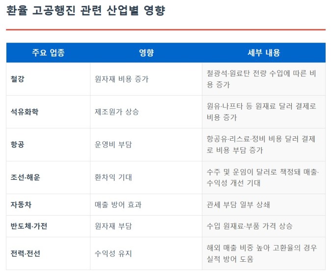 | 환율 고공 행진 관련 산업별 영향 [그래픽= AI] |