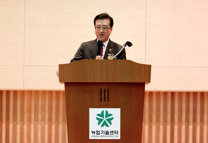 | 조원휘 대전시의장이 14일 농업기술센터에서 개최된 제24회 농촌지도자 진잠지역연합회 화합전진대회에 참석해 축사를 하고있다. [사진=대전시의회] 2025.11.14 jongwon3454@newspim.com |