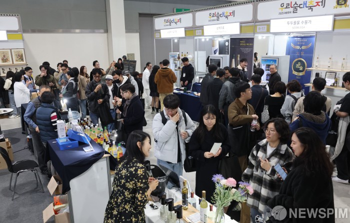 [서울=뉴스핌] 김학선 기자 = 14일 서울 양재동 aT센터에서 열린 '2025 대한민국 우리술 대축제'가 참가자들로 북적이고 있다. 올해로 15회째를 맞는 우리술 대축제는 매년 2만여 명이 찾는 대표적인 우리술 행사다. 2025.11.14 yooksa@newspim.com