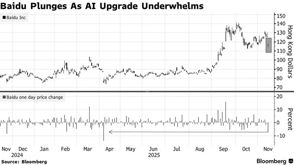 [AI의 종목 이야기] 바이두 '신형 AI 모델 실망' 한 때 10% 폭락