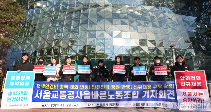 [서울=뉴스핌] 이경화 기자 = 서울교통공사 제3노조인 올바른노동조합이 오는 17일 서울시청 앞에서 '2025 임단협 쟁의행위 출정집회'를 연다.