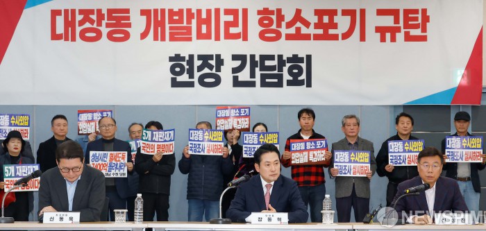 [성남=뉴스핌] 류기찬 기자 = 신상진 성남시장이 14일 오후 경기 성남시 분당구 성남도시개발공사에서 열린 ‘대장동 개발비리 항소포기 규탄 현장 간담회’에서 발언을 하고 있다. 2025.11.14 ryuchan0925@newspim.com