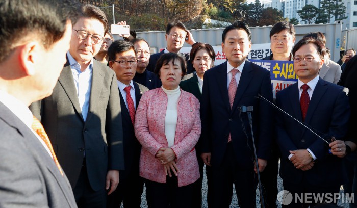 [성남=뉴스핌] 류기찬 기자 = 장동혁 국민의힘 대표가 14일 오후 경기 성남시 분당구 대장동 사회기반시설 건설현장에 방문해 현장을 살펴보고 있다. 2025.11.14 ryuchan0925@newspim.com