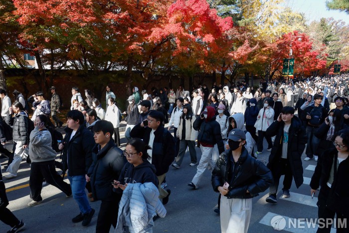 [서울=뉴스핌] 류기찬 기자 = 15일 오전 서울 종로구 성균관대학교에서 2026학년도 수시모집 논술시험을 마친 수험생들이 학교를 나서고 있다. 2025.11.15 ryuchan0925@newspim.com