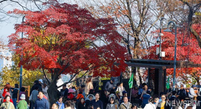 [서울=뉴스핌] 류기찬 기자 = 완연한 가을 날씨를 보이는 15일 오후 서울 중구 남산을 찾은 시민들이 단풍놀이를 즐기고 있다. 2025.11.15 ryuchan0925@newspim.com