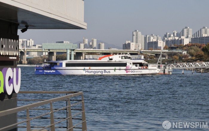 [서울=뉴스핌] 양윤모 기자 = 16일 한강버스가 서울 송파구 잠실선착장 부근 강바닥에 걸려 멈춰있다. 김민석 국무총리는 서울 한강버스가 강바닥에 걸려 멈춘 사고와 관련해 한강버스 운항 안전 체계를 재점검하라고 지시했다. 2025.11.16 yym58@newspim.com