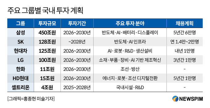 삼성은 반도체·AI·배터리·디스플레이 등 주력 산업 전반에서 국내 투자 확대와 대규모 고용 계획을 약속했다.