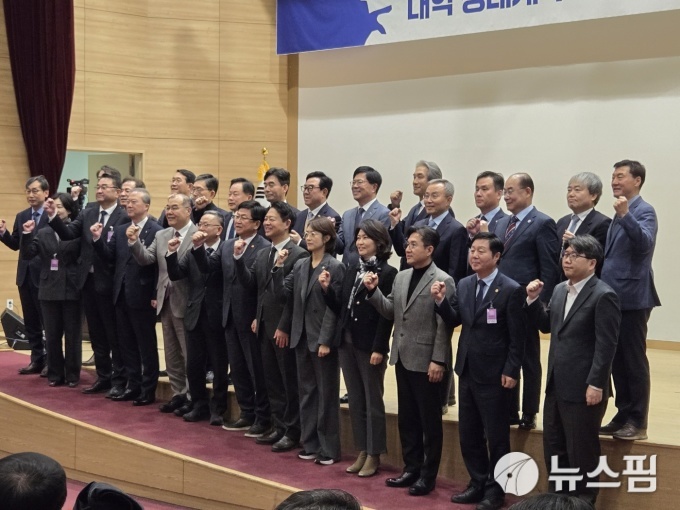 | 최교진(앞줄 왼쪽에서 일곱 번째) 교육부 장관, 김영호(앞줄 왼쪽에서 여덟 번째) 교육위원장 등이 17일 국회의원회관에서 열린 '국가균형성장을 위한 지속가능한 대학 생태계 구축' 토론회에서 기념촬영을 하고 있다. [사진=송주원 기자] |