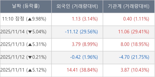 [장중수급포착] 에스티아이, 외국인/기관 동시 순매수… 주가 +9.98%
