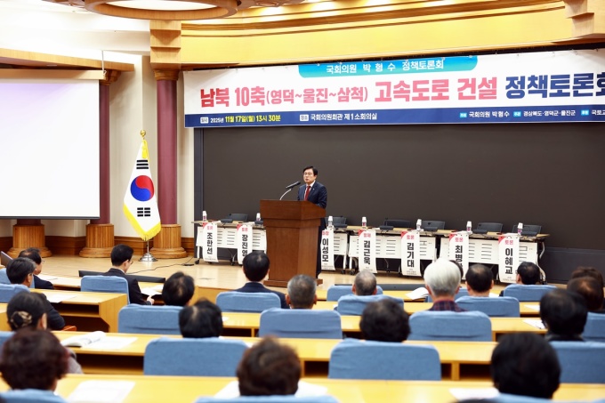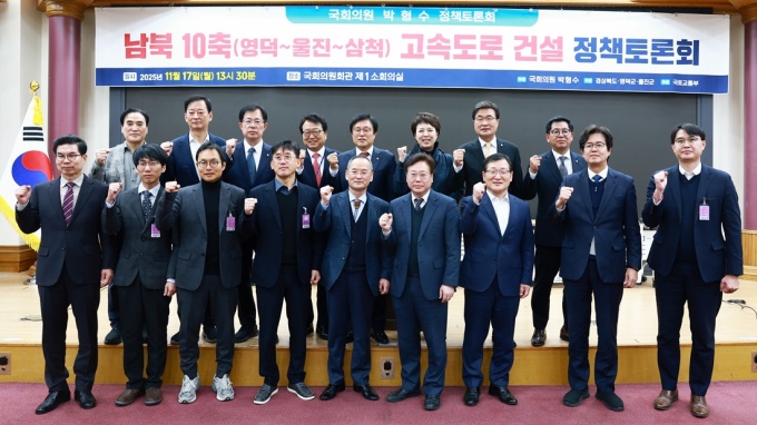 박 의원은 17일 국회 세미나실에서 '남북 10축(영덕~울진~삼척) 고속도로 건설 정책 토론회'를 열고 '단절된 남북 10축 고속도로 조기 건설' 위한 정책적 방안을 모색하고 건설 당위성의 지평을 확산했다.