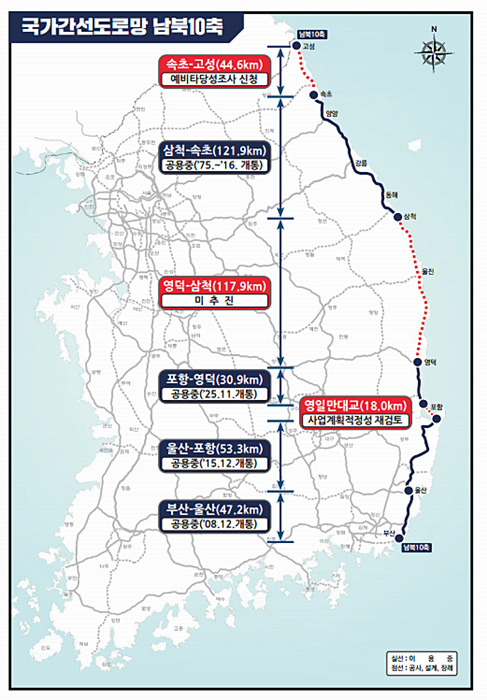 박형수 국회의원(경북 의성·청송·영덕·울진군, 국민의힘)이 경북 영덕에서 멈춰버린 '남북 10축 고속도로(영덕~울진~삼척 구간)' 건설 조기 추진에 나섰다.