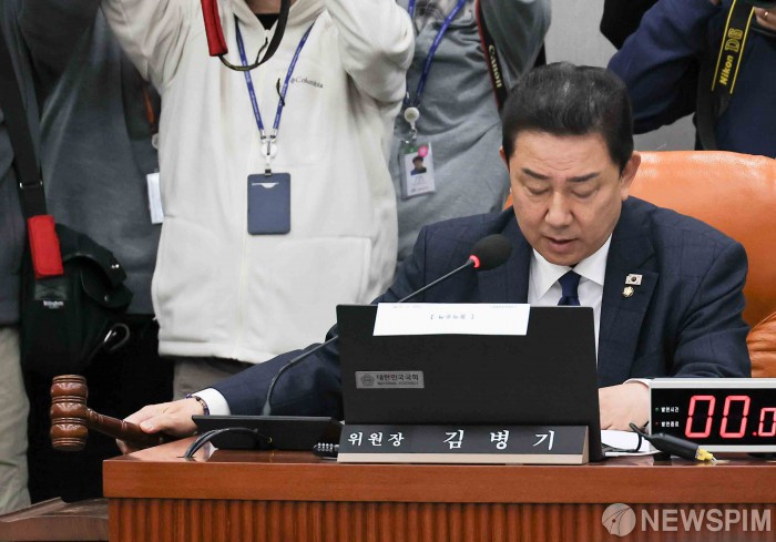 [서울=뉴스핌] 윤창빈 기자 = 김병기 국회 운영위원장이 18일 서울 여의도 국회에서 열린 운영위원회 전체회의에서 의사봉을 두드리고 있다. 2025.11.18 pangbin@newspim.com