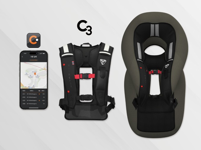 | 세이프웨어의 추락보호 에어백 C3와 통합 안전관리 앱. [사진=세이프웨어] |