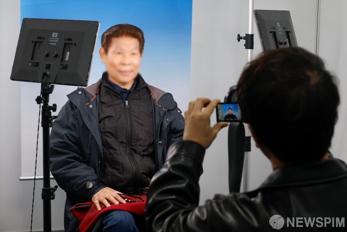 [서울=뉴스핌] 류기찬 기자 = 18일 오전 서울 강남구 세텍 서울무역전시장에서 열린 ‘서울 시니어 일자리 박람회 2025'를 찾은 한 구직자가 취업사진을 찍고 있다. 2025.11.18 ryuchan0925@newspim.com