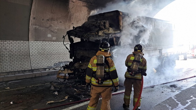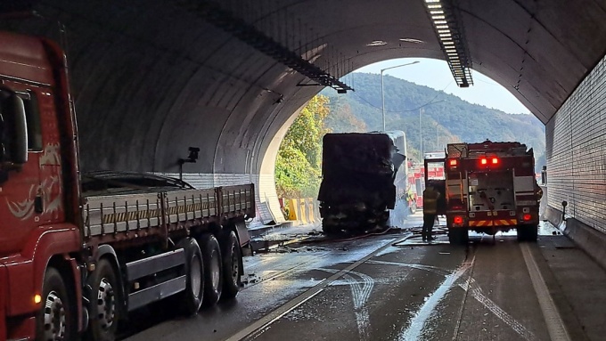 추돌 사고와 차량 화재로 터널 내 통행이 전면 차단됐다. 한국도로공사는 터널 내 통행 통제와 함께 인근 국도 우회를 안내했다.