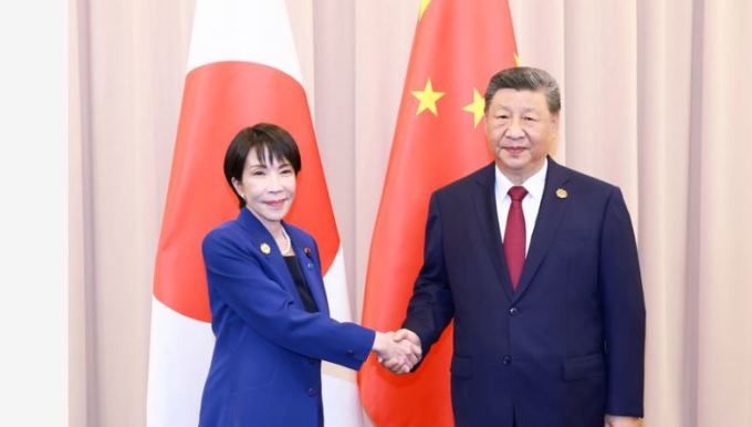 | [사진 신화사 = 뉴스핌 특약] 다카이치 사나에(高市早苗) 일본 총리(왼쪽)와 시진핑 중국 국가 주석. |
