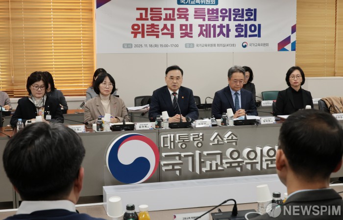 [서울=뉴스핌] 이길동 기자 =차정인 국가교육위원회 위원장이 18일 서울 종로구 정부서울청사에서 열린 국가교육위 고등교육 특별위원회 위촉식 및 1차 회의에서 모두 발언을 하고 있다.2025.11.18 gdlee@newspim.com