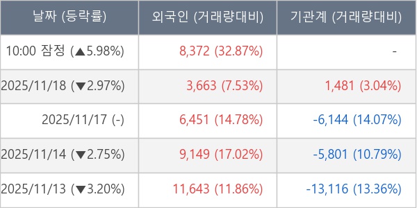 [표] 외국인ㆍ기관 순매매량 (단위 주)