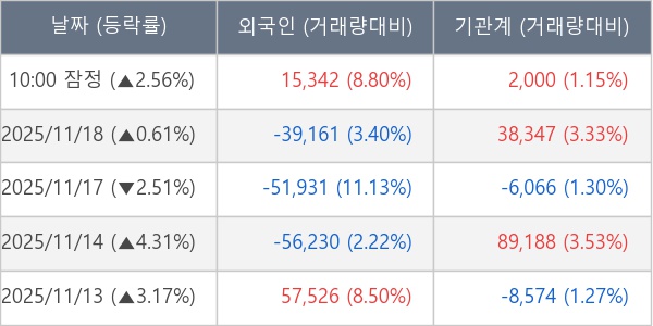[서울=뉴스핌] 로보뉴스 = 19일 10시 15분 현재 대한조선(439260)은 외국인과 기관이 각각 1.53 만 주, 0.20 만 주 순매수(잠정) 하면서 전일 대비 2.56% (현재가 68,200원) 상승하고 있다.