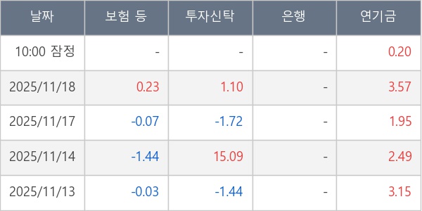 [표] 주요 기관별 순매매량 (단위 만주)