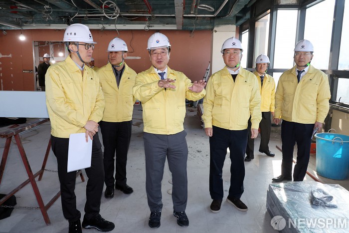 [서울=뉴스핌] 윤호중 행정안전부 장관이 19일 부산 동구 수정동에 위치한 해양수산부 임시청사 이전 예정지를 방문해 준비상황을 점검하고 있다. [사진=행정안전부] 2025.11.19 photo@newspim.com