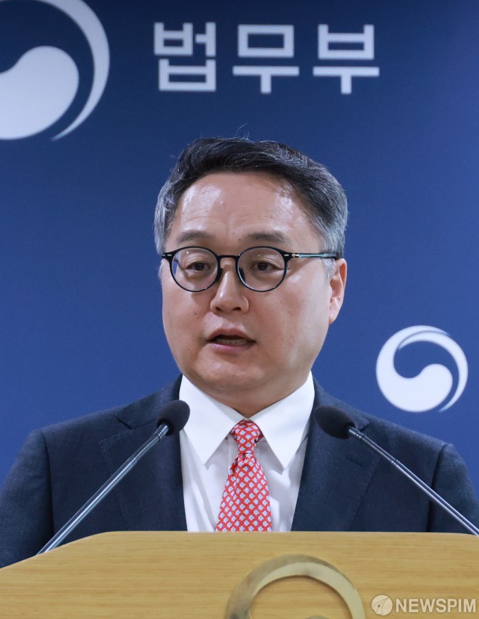 [과천=뉴스핌] 김학선 기자 = 정홍식 법무부 국제법무국장이 19 경기도 과천시 정부과천청사 법무부에서 론스타 ISDS 취소결정 선고 관련 브리핑을 하고 있다. 2025.11.19 yooksa@newspim.com