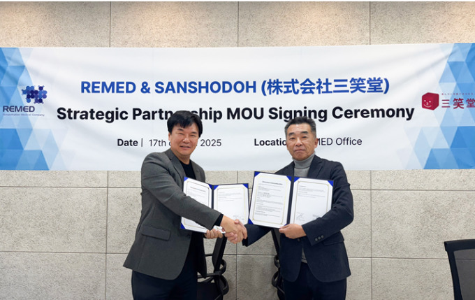 [서울=뉴스핌] 김연순 기자 = (주)리메드(REMED, 대표집행임원 이근용)는 일본의 대표 의료기기 유통 기업 산쇼도(Sanshodoh Co., Ltd., 株式会社三笑堂)와 전략적 협업 강화를 위한 양해각서를 체결했다고 19일 밝혔다. (주)리메드는 이번 협약을 일본 의료·에스테틱 시장 진출을 가속화하는 '실질적 전환점'으로 평가하고 있다.