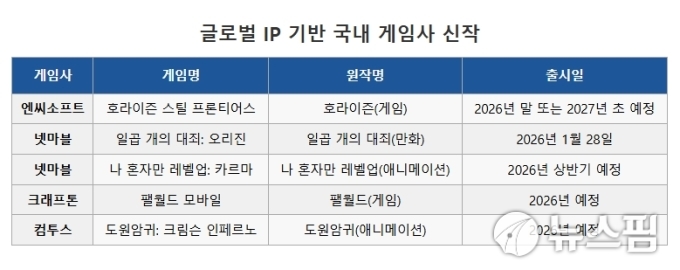 한 업계 관계자는 "예전에는 개발 여력이 있는 대기업보다 중견·중소기업에서 글로벌 IP를 활용한 게임 개발이 활발히 이뤄졌지만 최근에는 회사 규모와 무관하게 웹툰·웹소설·애니메이션 등 IP를 통해 안정적인 개발을 하는 추세"라고 전했다.