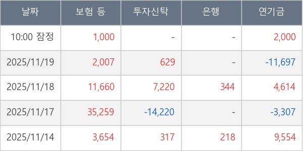 [표] 주요 기관별 순매매량 (단위 주)