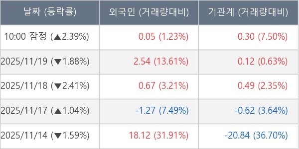 ※ 사모펀드 등 일부 기관의 순매매량은 표시되지 않음