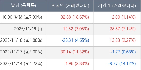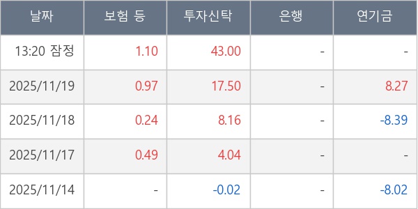 ※ 사모펀드 등 일부 기관의 순매매량은 표시되지 않음