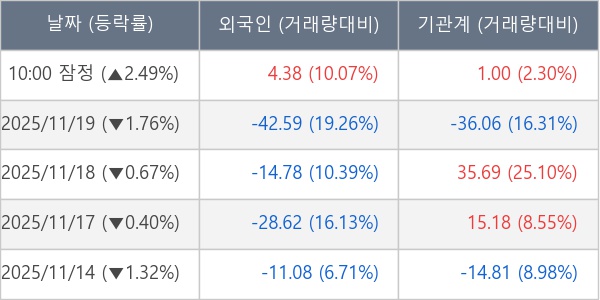 ※ 사모펀드 등 일부 기관의 순매매량은 표시되지 않음
