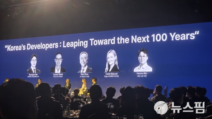 | [서울=뉴스핌] 송현도 기자 = 20일 한국부동산개발협회 20주년 행사에는 미국 쿠슈너 컴퍼니(Kushner Companies), 일본 모리빌딩(Mori Building), 네덜란드 엣지(EDGE), 한국 MDM그룹 등 글로벌 디벨로퍼 4개사가 참여해 각국의 도시·주거 개발 전략과 장기적인 도시 경쟁력 강화를 위한 개발 사례를 공유했다. 사진은 대한민국 디벨로퍼 : 향후 100년을 향한 도약을 주제로 한 좌담회와 토론회 모습 2025.11.20 dosong@newspim.com |