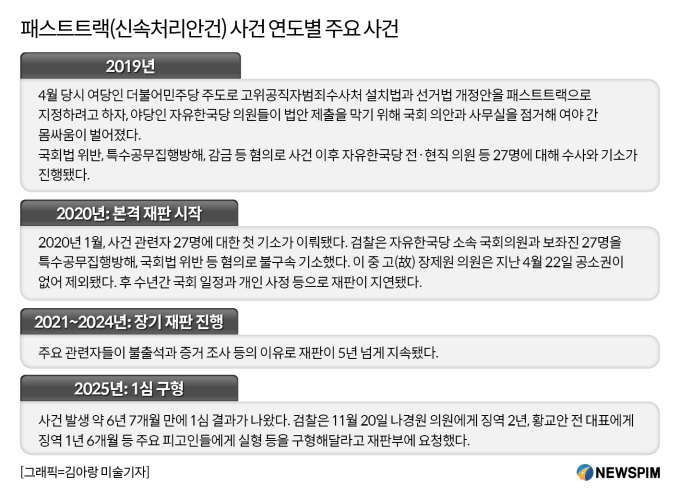 이날 1심 선고는 사건 발생 6년 7개월, 검찰 기소 5년 10개월 만이다. 재판이 진행되는 사이에도 두번의 총선과 한번의 지방선거가 치러졌다.