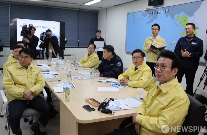 인천연안여객터미널 안전관리 현황보고 받는 김민석 총리