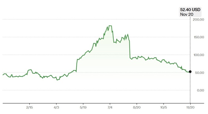 나스닥 시장에서 거래되는 세즐 주가는 11월20일(현지시각) 52.40달러에 거래를 종료해 연초 이후 15.24% 상승했지만 지난 7월 기록한 최고치 186.74달러에서 72% 폭락했다.