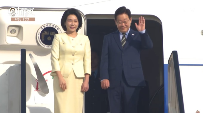 | [서울=뉴스핌] 이집트 공식 방문을 마친 이재명 대통령과 김혜경 여사가 지난 21일(현지시간) 남아공 주요 20개국(G20) 정상회의 참석을 위해 카이로 국제공항에서 공군 1호기에 올라 인사하고 있다. [사진=대통령실] 2025.11.22 photo@newspim.com |